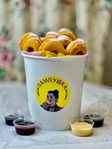 Бабусин Бокс — це 800 г ніжних сирних пампушок з легким ароматом апельсинової цедри + 4 традиційні солодкі соуси (200 г у подарунок).